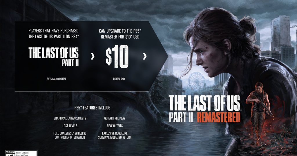 According to Naughty Dog, the upgrade to The Last of Us Part 2 Remastered for PS5 comes with a $10 price tag, available exclusively through the PlayStation Store.